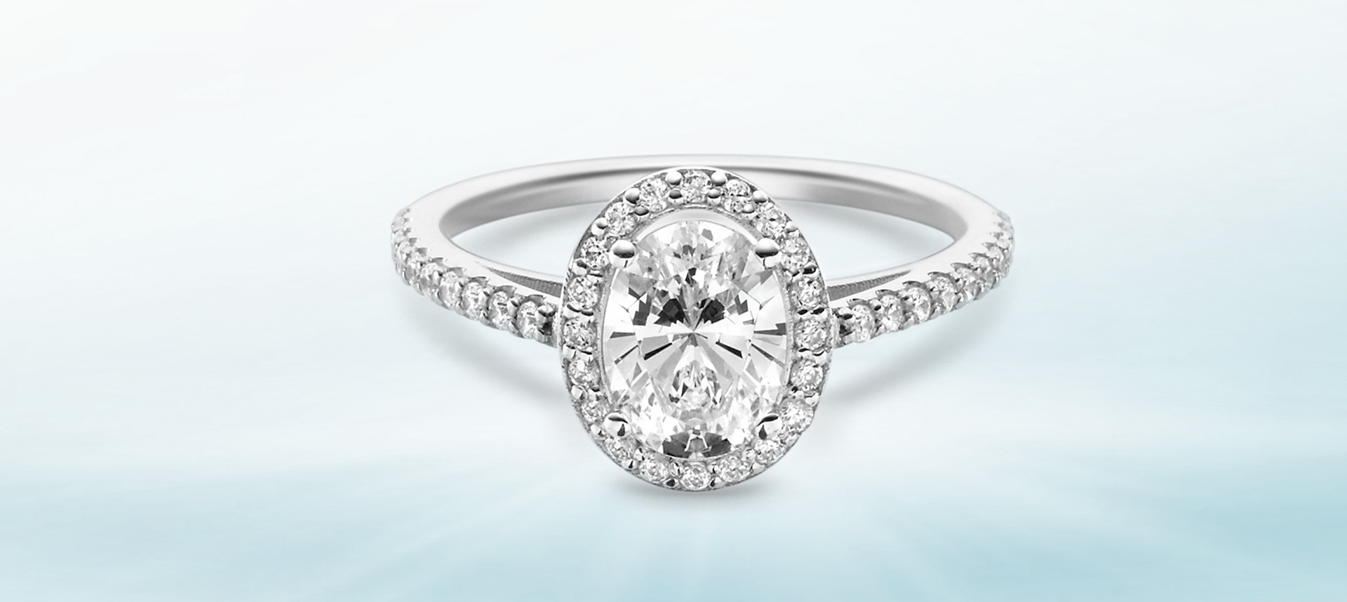 중앙의 아름다운 다이아몬드와 주변을 감싸는 후광이 빛이 눈부신 순간을 완성합니다.